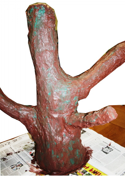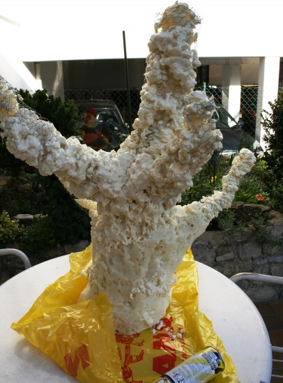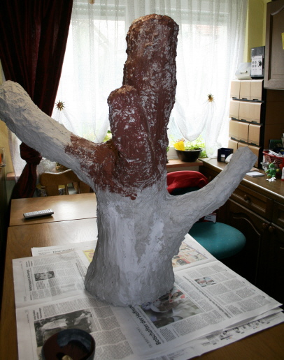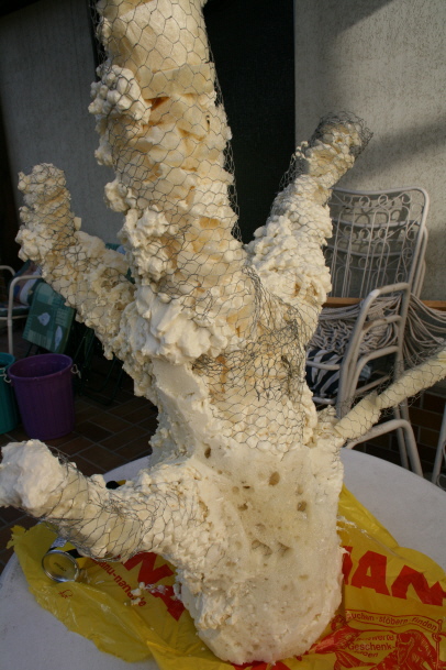 Mein erster Versuch einen künstlichen Baum herzustellen. Als Unterbau diente ein großer Tontopf um auch einen besseren Stand zu haben. Darum wurde der Hasendraht befestigt. Mit einfachem Bauschaum wird dann das ganze ausgeschäumt.